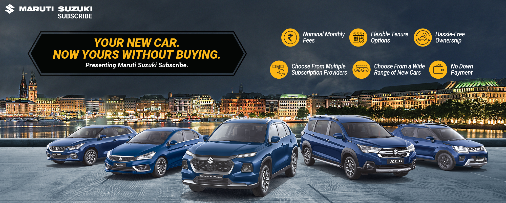 Maruti Suzuki Subscribe enables all customers to enjoy driving their preferred Maruti Suzuki cars without having to deal with all the financial responsibilities that come with owning a car.All you need to do is opt for a monthly subscription plan at a fixed monthly fee, which includes the routine maintenance and insurance costs, and choose a flexible tenure. At Adarsha Auto World Pvt. Ltd. in, , Mancherial, all Hatchback, Sedan, SUV, the MUV models line-up includes Baleno, Invicto, EVitara, Jimny, Ciaz, Ignis, Fronx, Grand Vitara, XL6. Here, you will enjoy Maruti Suzuki Subscribe benefits such as: